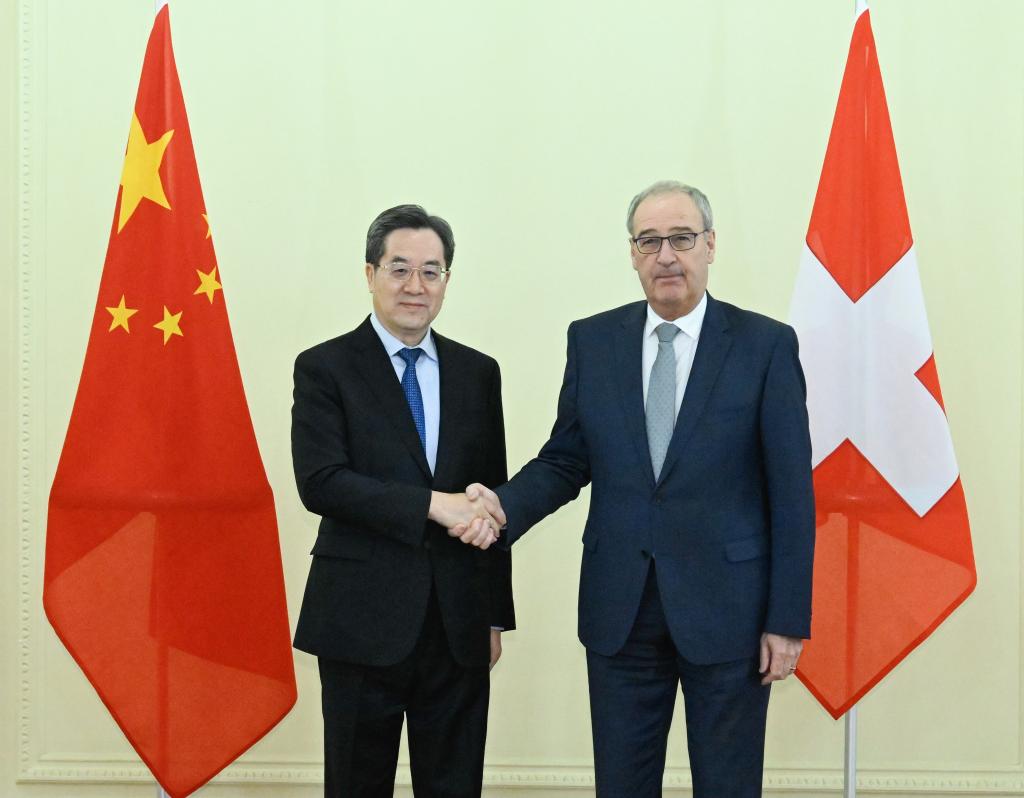 M. Ding, également membre du Comité permanent du Bureau politique du Comité central du Parti communiste chinois, a rencontré Karin Keller-Sutter, présidente de la Confédération suisse et chef du Département fédéral des finances, et s'est entretenu avec Guy Parmelin, vice-président du Conseil fédéral et chef du Département fédéral suisse de l'économie, de la formation et de la recherche, en marge de la réunion annuelle 2025 du Forum économique mondial (FEM).
