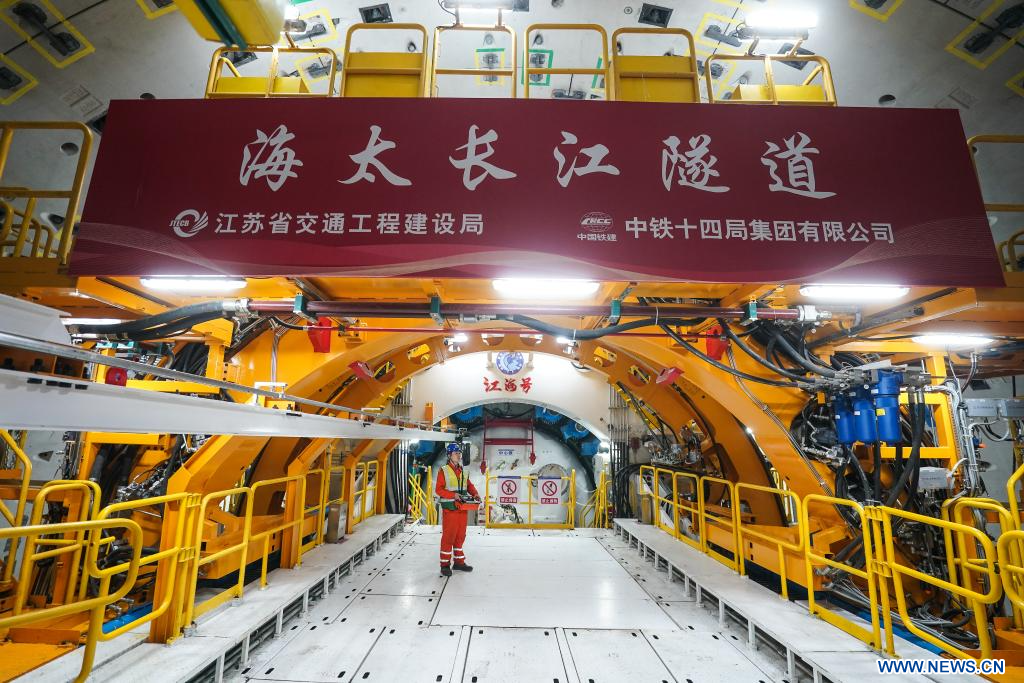 NANJING, 9 avril (Xinhua) -- La Chine a déployé mercredi un tunnelier géant de fabrication nationale pour la construction du plus long tunnel autoroutier sous-marin au monde réalisé à l'aide d'un tunnelier.
