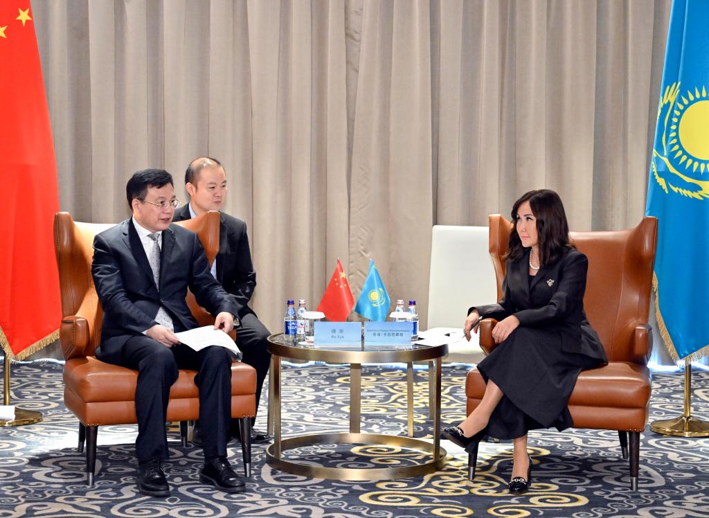 ASTANA, 22 juin (Xinhua) -- Le président de l'Agence de presse Xinhua, Fu Hua, a rencontré dimanche à Astana Raushan Kazhibayeva, directrice du complexe de télévision et de radio présidentiel kazakh.