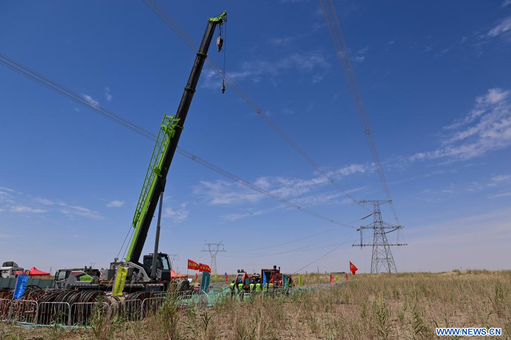 URUMQI, 13 juillet (Xinhua) -- La Chine a achevé la construction d'une boucle de transmission électrique à très haute tension de 4.197 km autour du bassin de Tarim, qui abrite le plus grand désert du pays, marquant ainsi une avancée majeure dans le développement des infrastructures du sud de la région autonome ouïgoure du Xinjiang, dans le nord-ouest de la Chine.