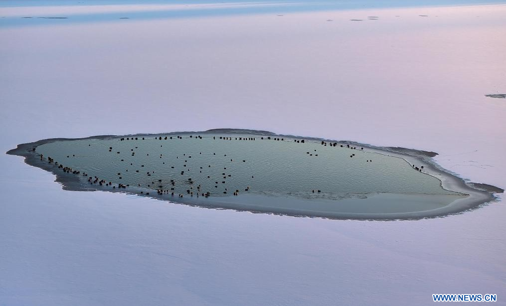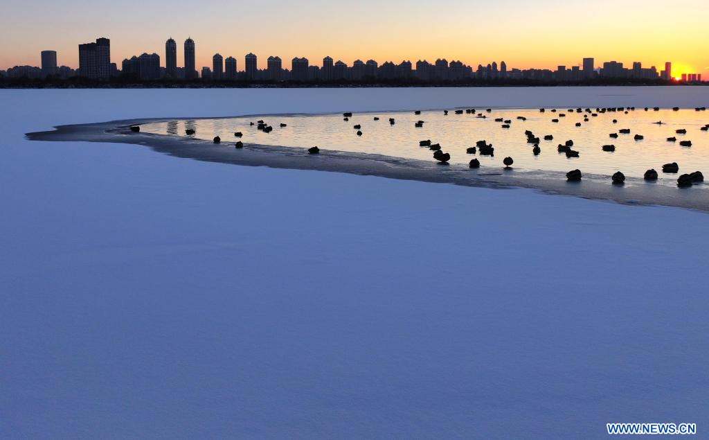 HARBIN, 28 novembre (Xinhua) -- Des colverts se reposant dans la section de Harbin de la rivière Songhua, dans la province chinoise du Heilongjiang (nord-est), le 27 novembre 2025. (Photo : Zhang Shu)