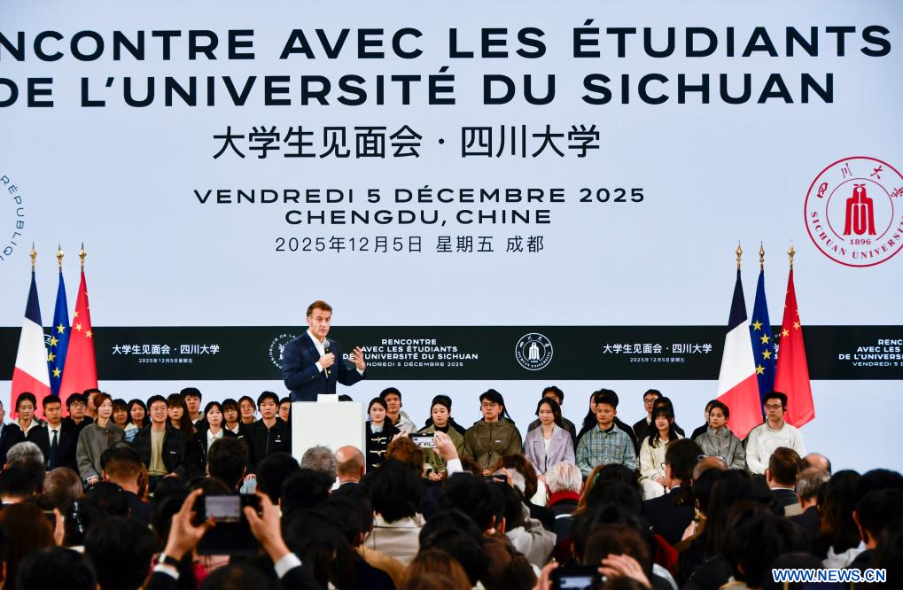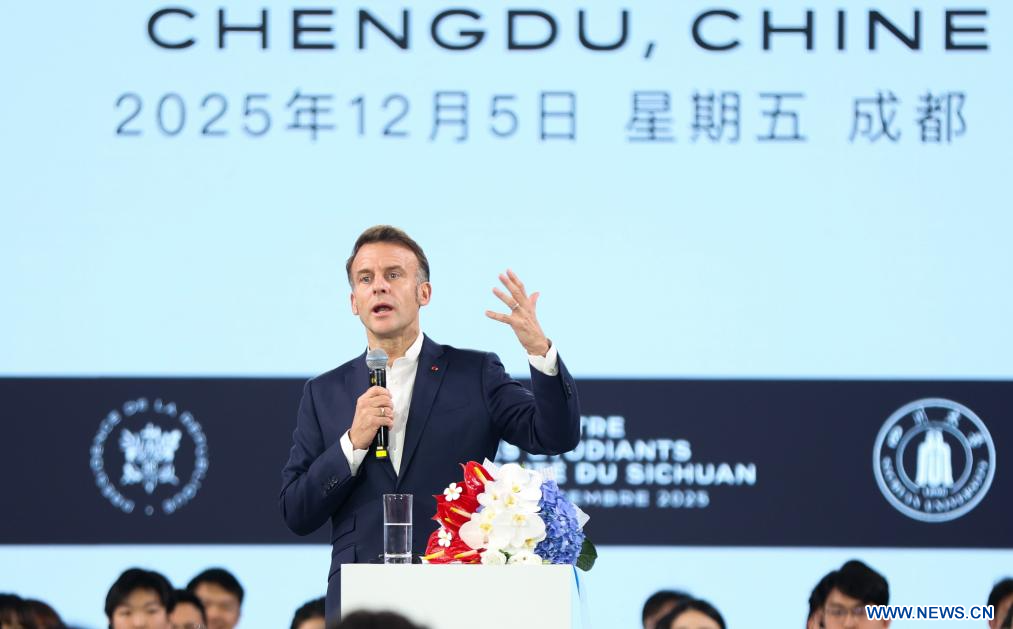 CHENGDU, 5 décembre (Xinhua) -- Le président français Emmanuel Macron a visité vendredi l'Université du Sichuan à Chengdu, dans la province chinoise du Sichuan (sud-ouest).