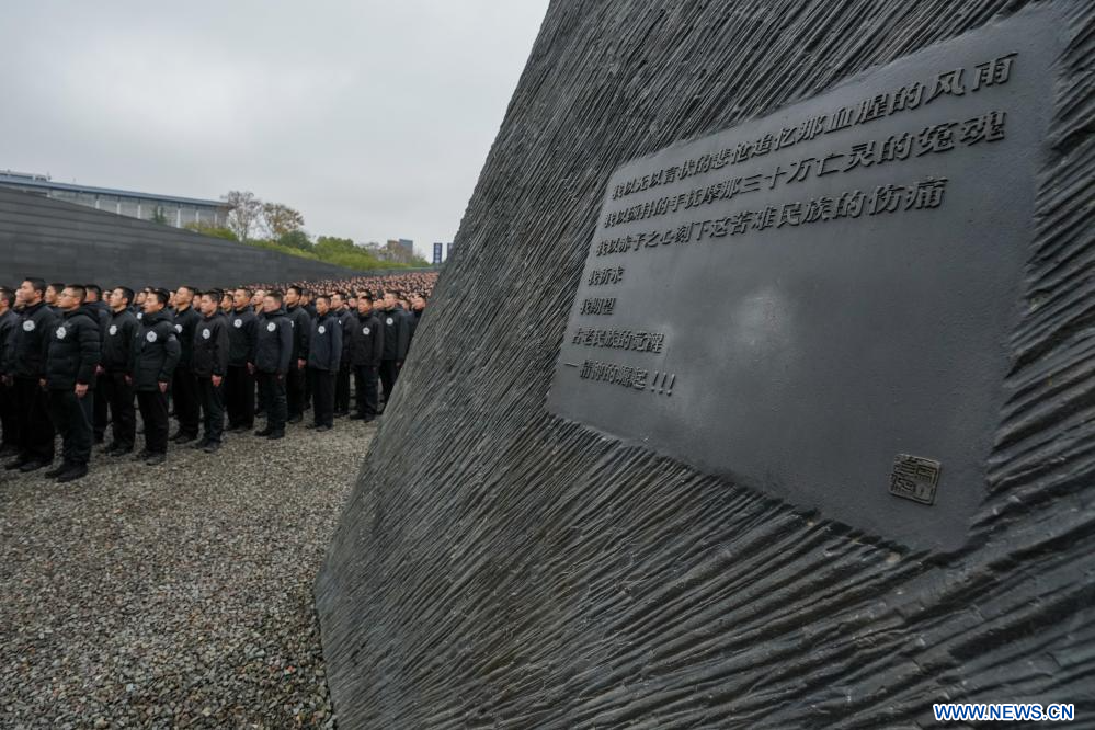 NANJING, 13 décembre (Xinhua) -- La 12e journée nationale de commémoration des victimes du massacre de Nanjing a été observée samedi à Nanjing pour rendre hommage aux 300.000 victimes tuées par les troupes japonaises durant ces atrocités, en cette année de commémoration du 80e anniversaire de la fin de la Seconde Guerre mondiale. Fin