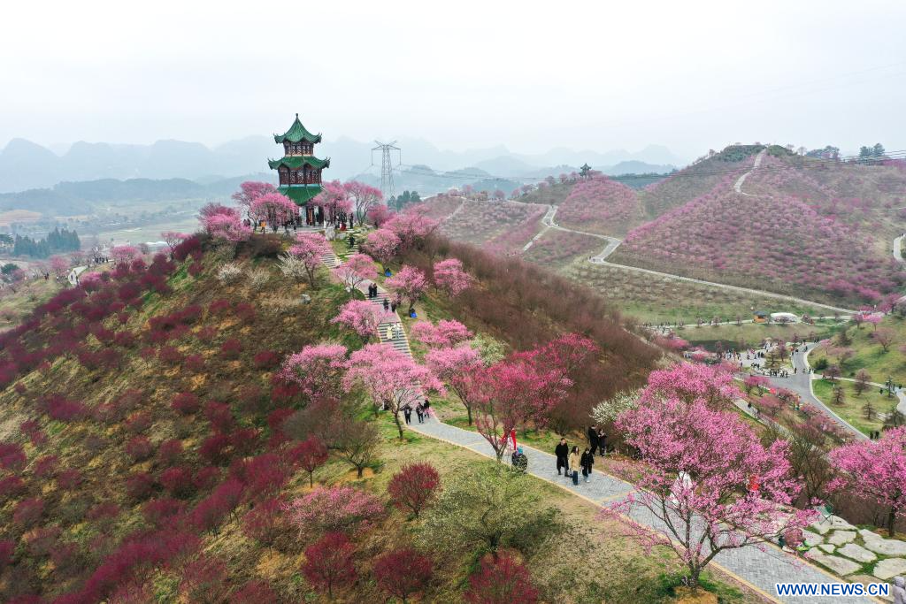 S'étendant sur plus de 1.800 mus (120 hectares), un jardin de pruniers en fleurs a ouvert ses portes au public samedi dans la Nouvelle Zone de Guian, attirant de nombreux visiteurs.