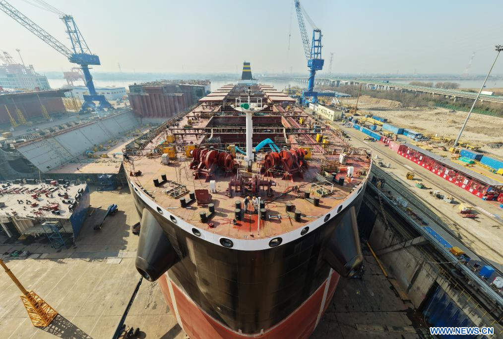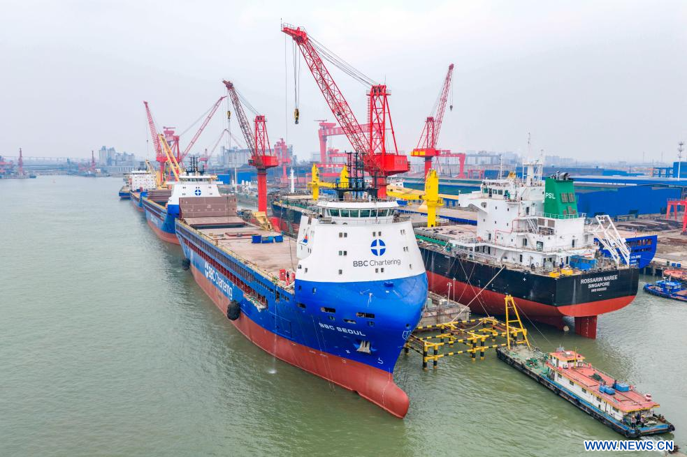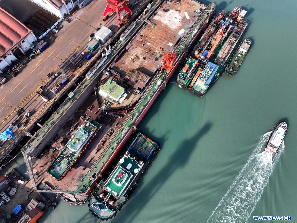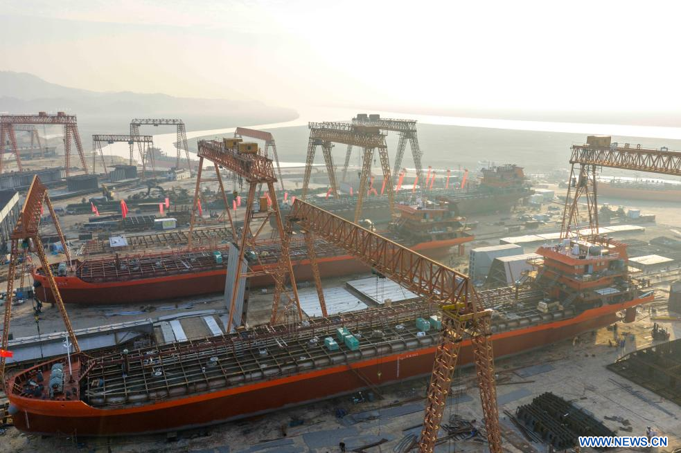 TAIZHOU, 4 février (Xinhua) -- Photo d'un chantier naval de Duchang Shipyard Co., Ltd., à Jiujiang, dans la province chinoise du Jiangxi (est), le 3 janvier 2026.