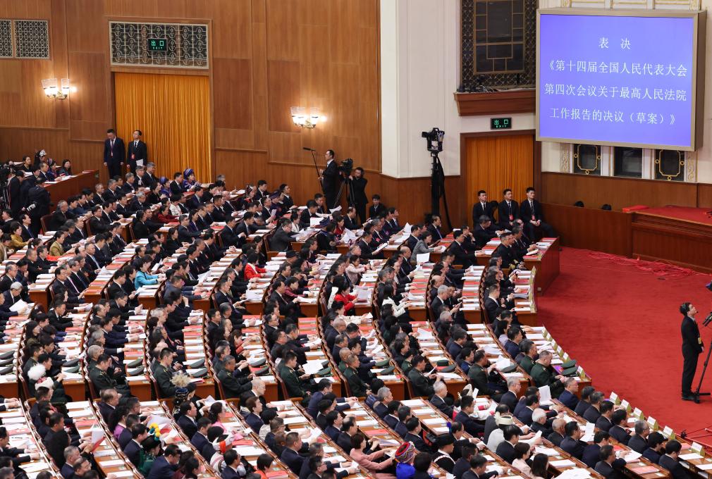 BEIJING, 12 mars (Xinhua) -- La 14e Assemblée populaire nationale, l'organe législatif national chinois, a tenu jeudi la réunion de clôture de sa quatrième session.