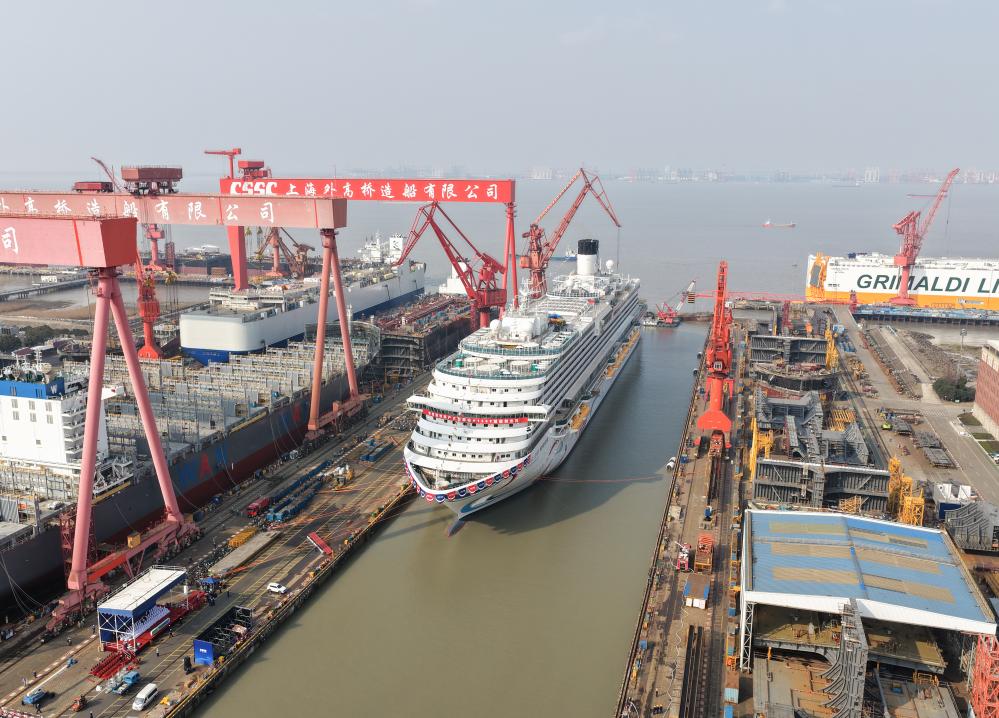 SHANGHAI, 20 mars (Xinhua) -- Le deuxième grand navire de croisière construit en Chine a quitté son quai à Shanghai vendredi, marquant une nouvelle étape vers ses essais en mer et sa livraison définitive, alors que le pays intensifie ses efforts dans le marché du tourisme de croisière.