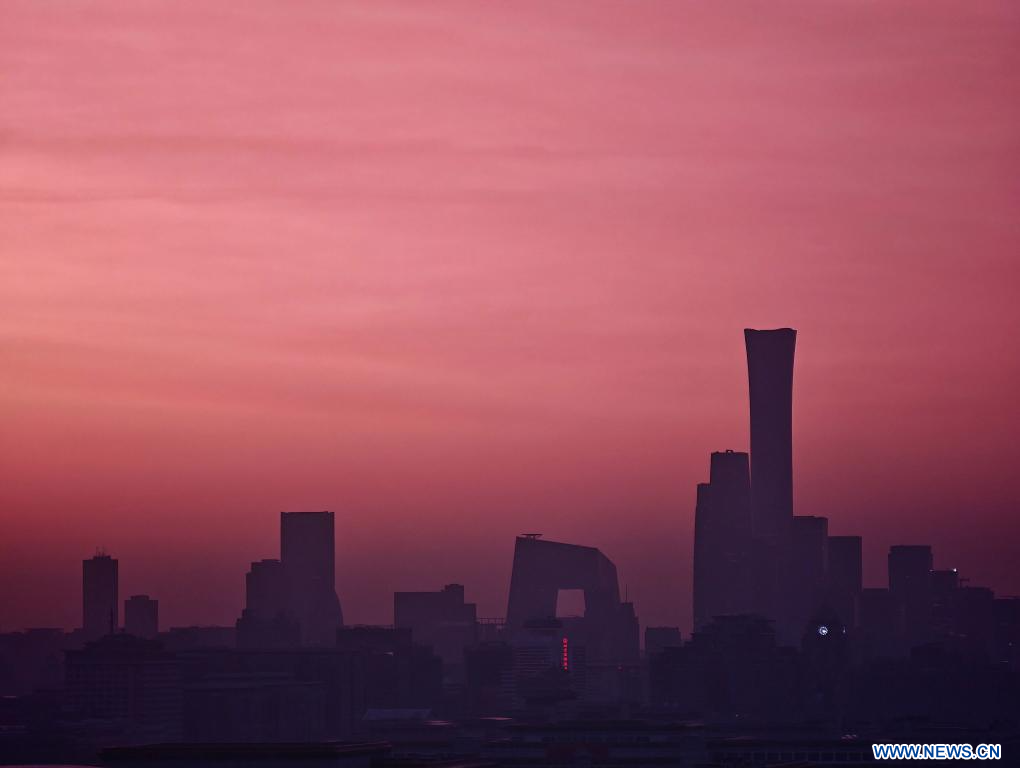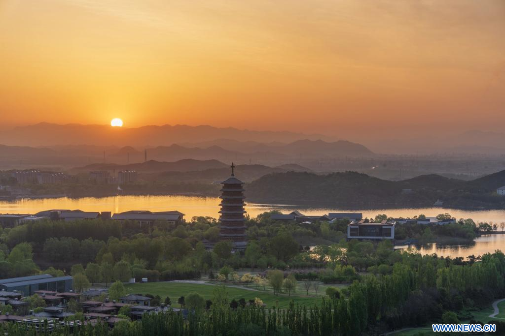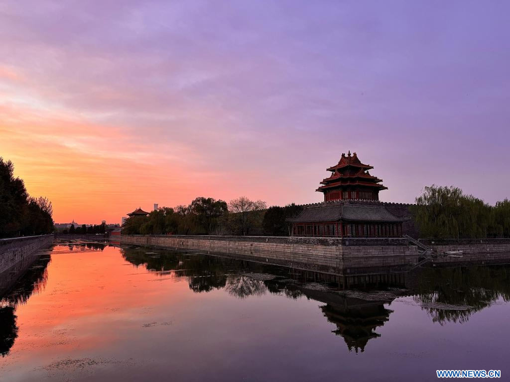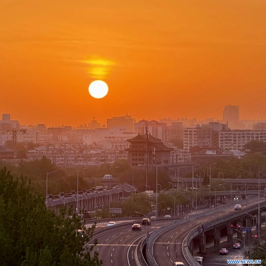 BEIJING, 21 avril (Xinhua) -- Cette photo prise le 21 avril 2026 montre un paysage de Beijing, capitale chinoise, à la lueur de l'aube. (Photo : Xing Guangli)