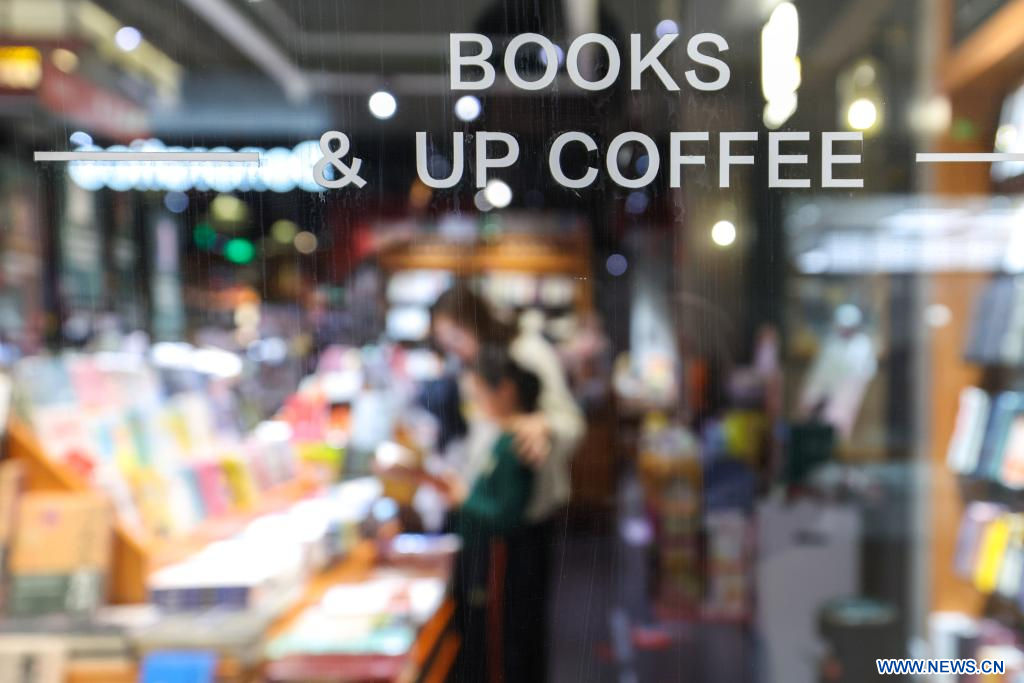 CHANGCHUN, 23 avril (Xinhua) -- Des habitants choisissent des livres dans une librairie à Changchun, capitale de la province du Jilin (nord-est de la Chine), le 16 avril 2026. Ces dernières années, Changchun a favorisé la transformation des librairies classiques en espaces d'expérience culturelle complète en introduisant et en développant des concepts de lecture innovants. (Photo : Xu Chang)