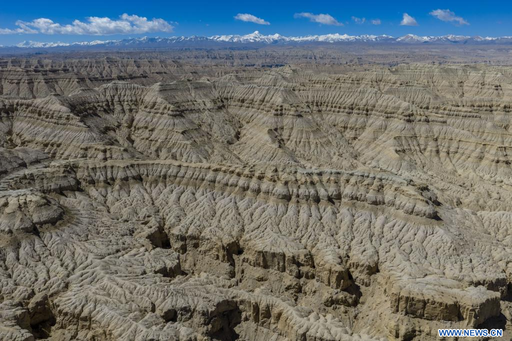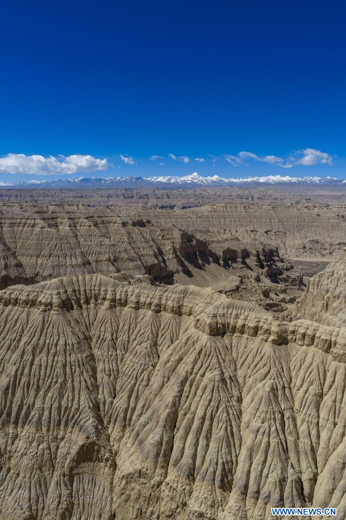 NGARI, 27 avril (Xinhua) -- Photo aérienne prise par un drone de formations géologiques dans le district de Zanda de la préfecture de Ngari, dans la région autonome du Xizang (sud-ouest de la Chine), le 26 avril 2026. (Photo : Tenzing Nima Qadhup)