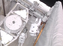 Troisième sortie de deux astronautes de la navette Discovery, sans réussir à résoudre une panne de la plate-forme de fret de ISS