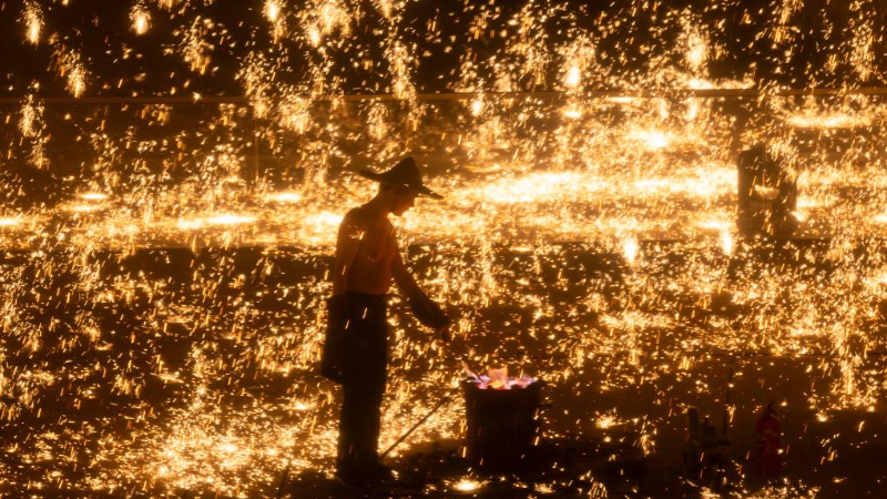 Chine : feux d'artifice de fer en fusion à Shanghai