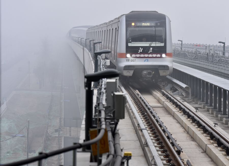 Un train circule sur la ligne Yanfang à Beijing, capitale de la Chine, le 30 décembre 2017. (Xinhua/Luo Xiaoguang)
