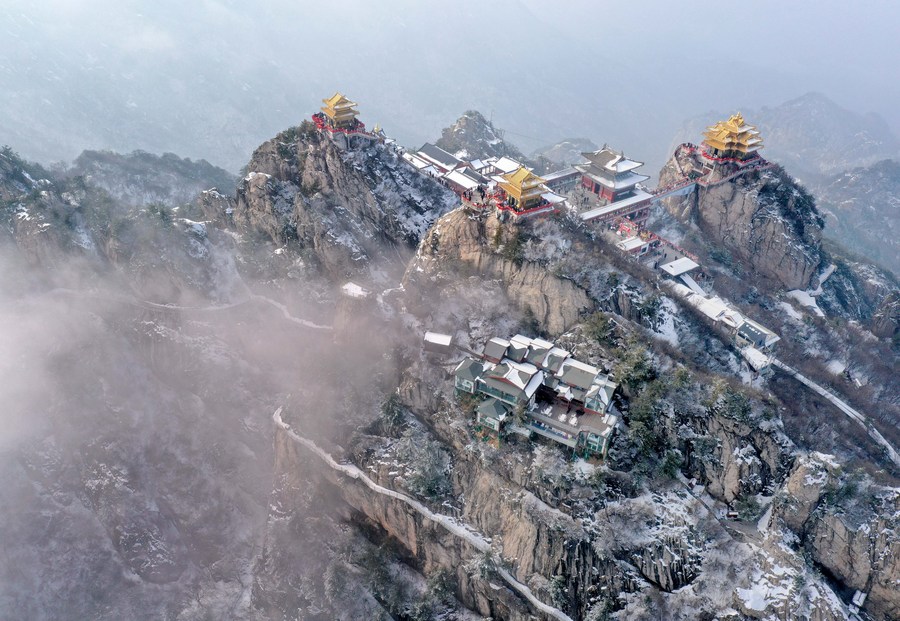 Photo aérienne prise le 23 février 2023 du mont Laojun, à Luanchuan, district de la ville de Luoyang, dans la province chinoise du Henan (centre). (Photo : Li An) ■