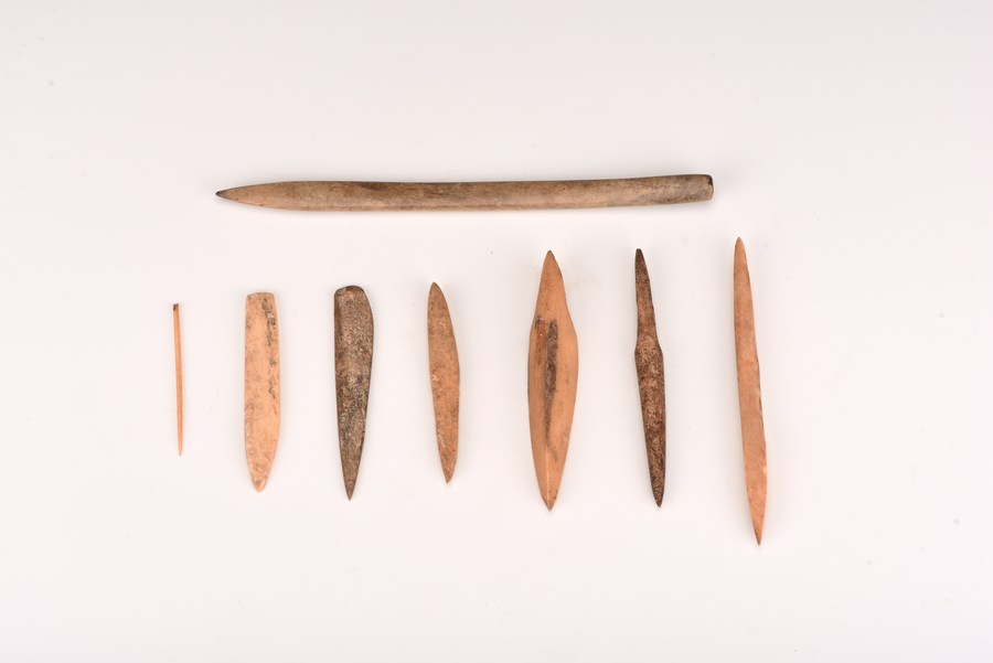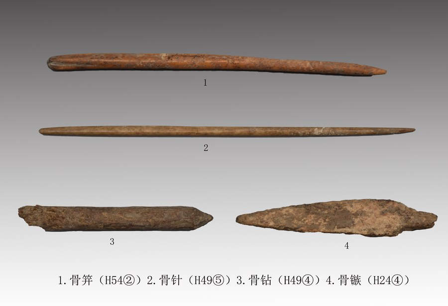 Photo non datée fournie par l'Institut provincial de l'archéologie du Shanxi montrant des outils en os découverts sur le site archéologique de Yuancun, remontant à la fin de la période de la culture de Yangshao il y a environ 5.000 à 7.000 ans à Yuancun, village du district de Xiaxian à Yuncheng, ville de la province du Shanxi (nord).