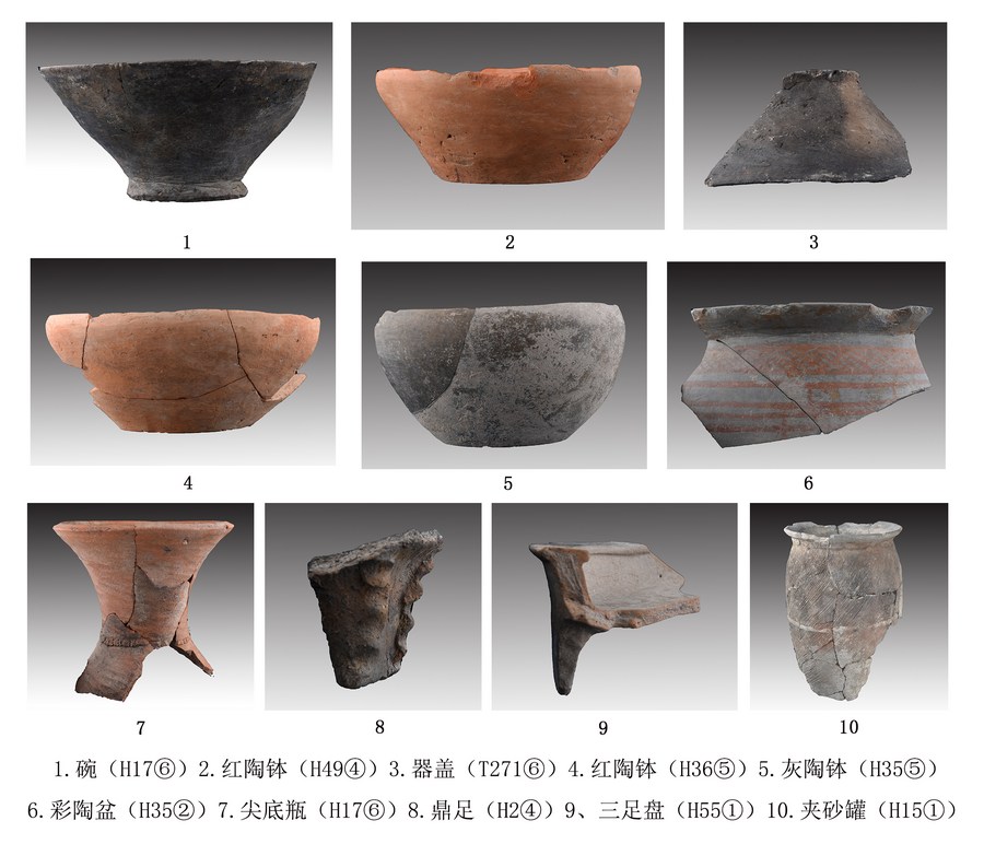 Photo non datée fournie par l'Institut provincial de l'archéologie du Shanxi montrant des poteries découvertes sur le site archéologique de Yuancun, remontant à la fin de la période de la culture de Yangshao il y a environ 5.000 à 7.000 ans à Yuancun, village du district de Xiaxian à Yuncheng, ville de la province du Shanxi (nord).