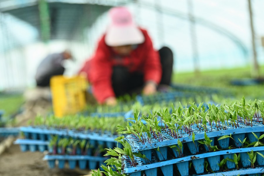 BOHU, 22 mars (Xinhua) -- Ces dernières années, le district de Bohu, dans la région autonome ouïgoure du Xinjiang, dans le nord-ouest de la Chine, a donné la priorité au développement de l'agriculture moderne. Les technologies avancées ont donné un nouvel élan à la revitalisation rurale et au développement agricole.