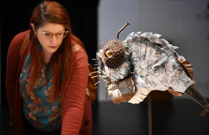 FLORENCE, 26 avril (Xinhua) -- Un visiteur contemple un objet exposé lors de la 87e Foire internationale de l'artisanat à Florence, en Italie, le 25 avril 2023. La foire se tient du 25 avril au 1er mai 2023. (Xinhua/Jin Mamengni)