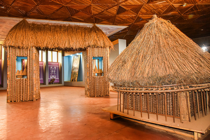 Photo prise le 10 avril 2023 montrant des huttes traditionnelles exposées au musée des civilisations du Cameroun à Dschang, au Cameroun. Avec une superficie d'environ 1.000 mètres carrés, le musée a été officiellement ouvert au public en 2010. (Xinhua/Kepseu)