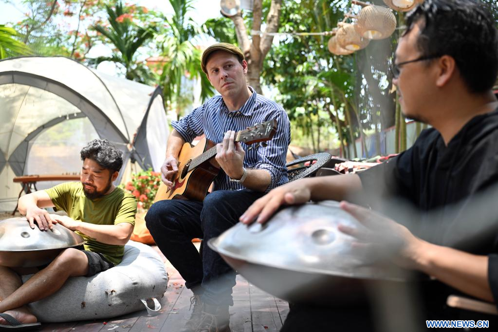 HAIKOU, 5 juin (Xinhua) -- Des stands de nourriture dans les vieilles rues, des cocotiers et des couchers de soleil dans les parcs, des surfeurs profitant des vagues... Voilà autant d'instantanés de la vie quotidienne capturés par le photographe français Jeremy Grinan à Hainan, province insulaire tropicale du sud de la Chine.