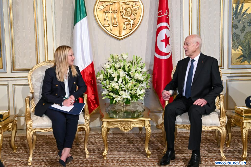 TUNIS, 6 juin (Xinhua) -- "La question du fléau de la migration irrégulière ne peut pas être résolue suivant, uniquement, une approche sécuritaire (...) un problème qui s'aggrave de jour en jour et qui ne peut être abordé que collectivement suivant une vision globale", a souligné mardi le président tunisien Kaïs Saïed, à l'issue de son entretien avec la Première ministre italienne, Giorgia Meloni, arrivée ce mardi à Tunis pour une visite d'amitié et de travail sur invitation du chef d'Etat tunisien.