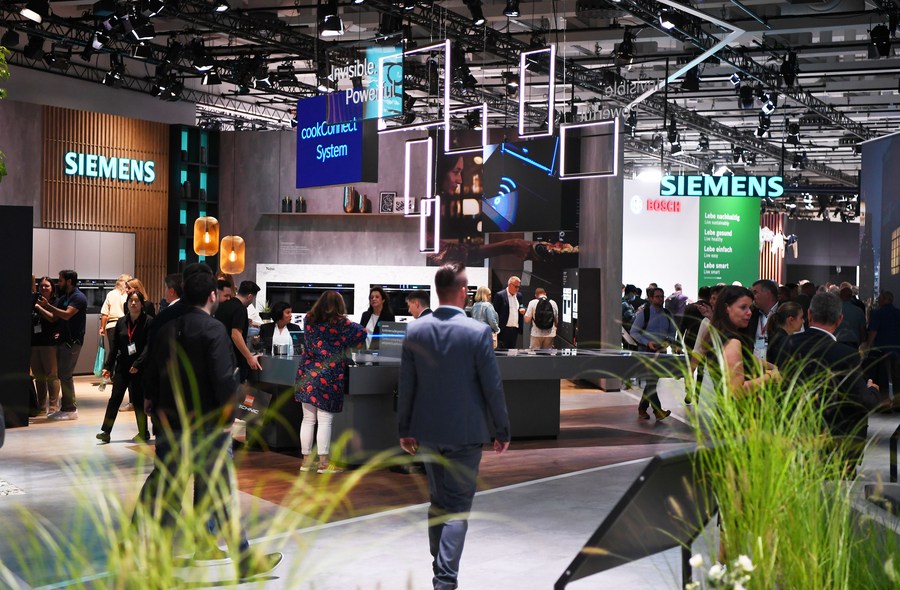 Des visiteurs au stand de Siemens lors du salon technologique allemand IFA 2022 à Berlin, en Allemagne, le 2 septembre 2022. (Xinhua/Ren Pengfei)