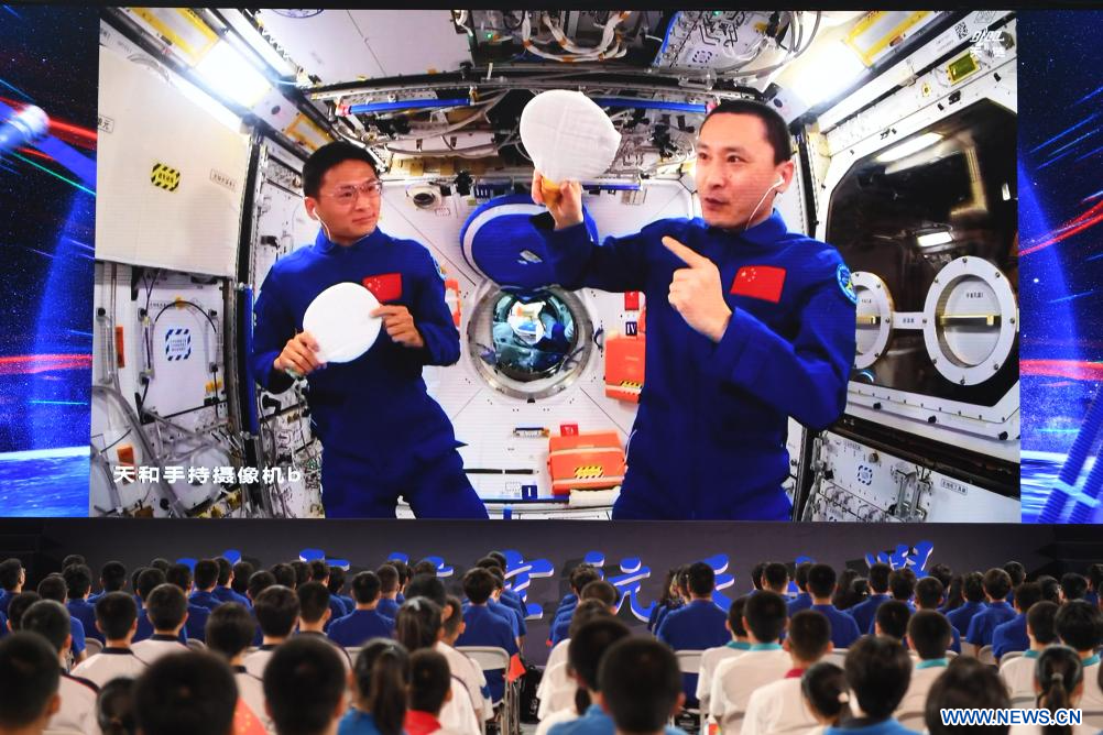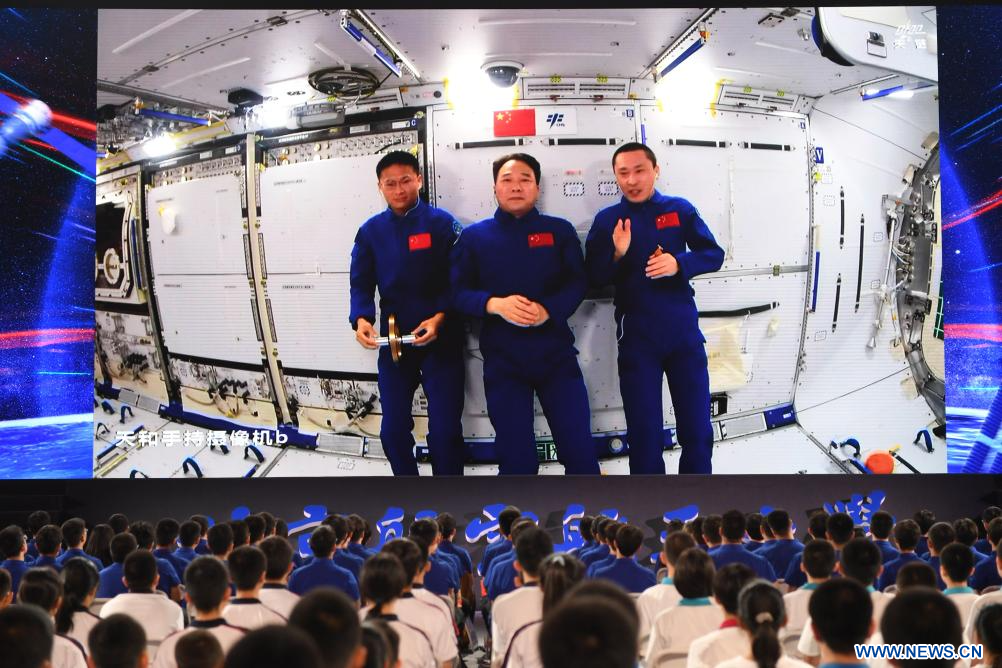 BEIJING, 21 septembre (Xinhua) -- Le quatrième cours en direct de la station spatiale chinoise a eu lieu jeudi après-midi. Les astronautes de Shenzhou-16, à savoir Jing Haipeng, Zhu Yangzhu et Gui Haichao, l'ont donné à des élèves sur Terre.