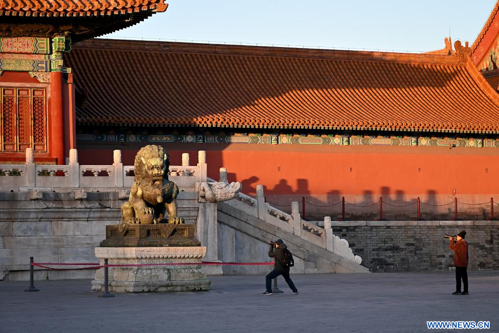BEIJING, 30 novembre (Xinhua) -- Des touristes visitent le Musée du Palais, également connu sous le nom de Cité interdite, à Beijing, capitale chinoise, le 29 novembre 2023. (Photo : Cai Yang)