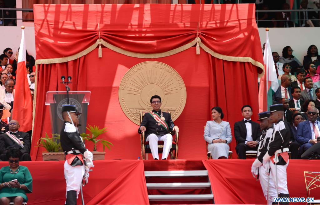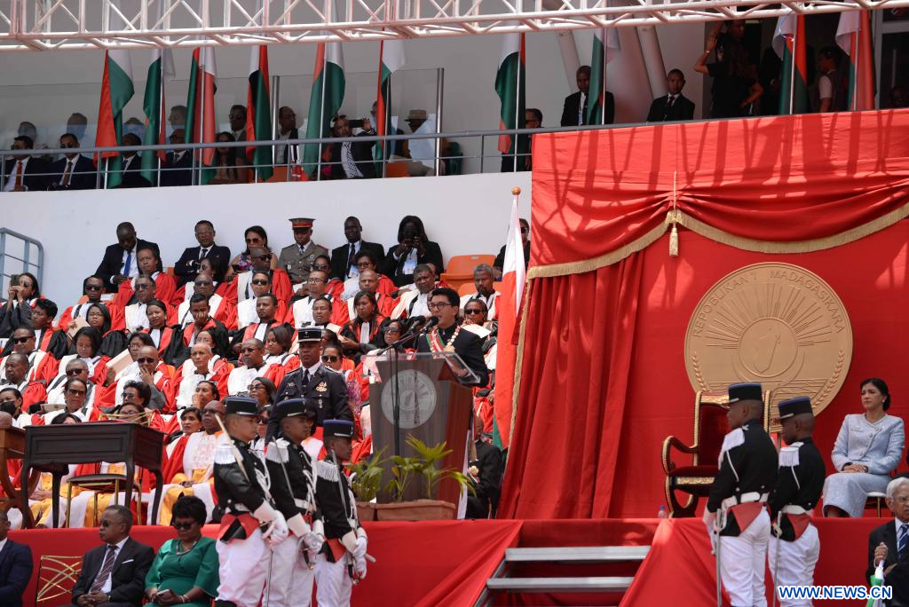 ANTANANARIVO, 16 décembre (Xinhua) -- Le président Andry Rajoelina entre officiellement en fonction après avoir prêté serment lors d'une cérémonie d'investiture, samedi à Antananarivo, la capitale de Madagascar.