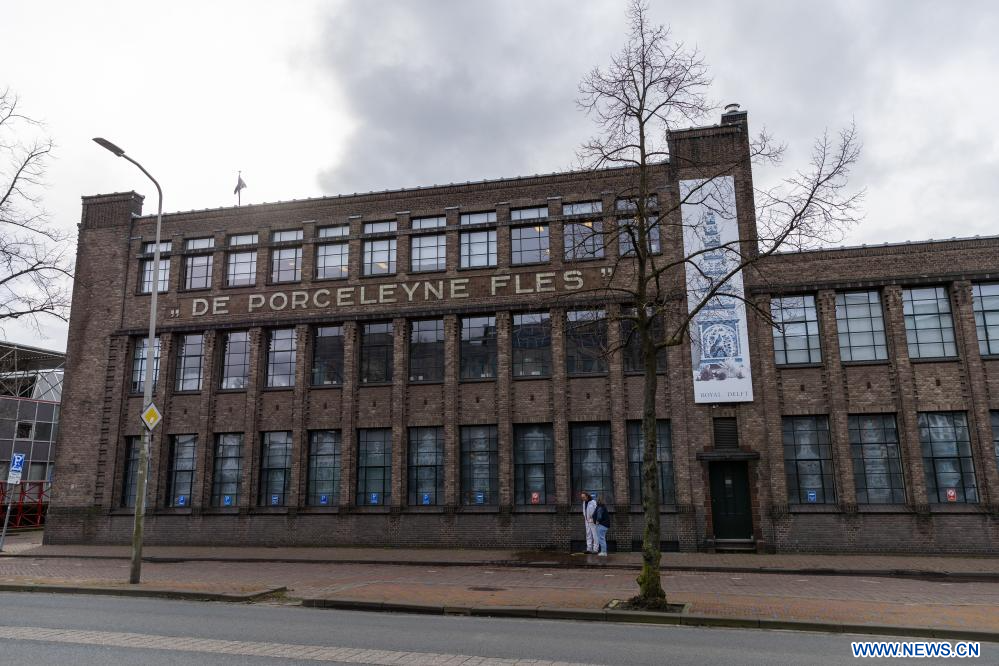 DELFT, 24 février (Xinhua) -- Photo prise le 23 février 2024 montrant la façade du Musée royal de Delft, à Delft, aux Pays-Bas. (Xinhua/Meng Dingbo)