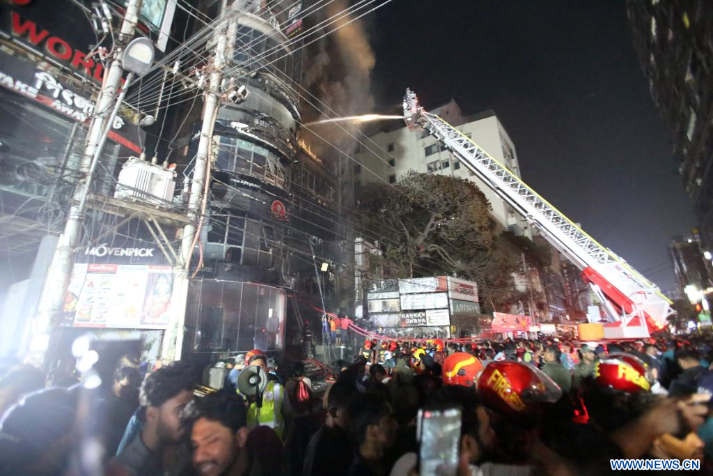 DACCA, 1er mars (Xinhua) -- Au moins 43 personnes ont perdu la vie jeudi soir après qu'un incendie dévastateur a ravagé un immeuble de grande hauteur de la capitale bangladaise Dacca.