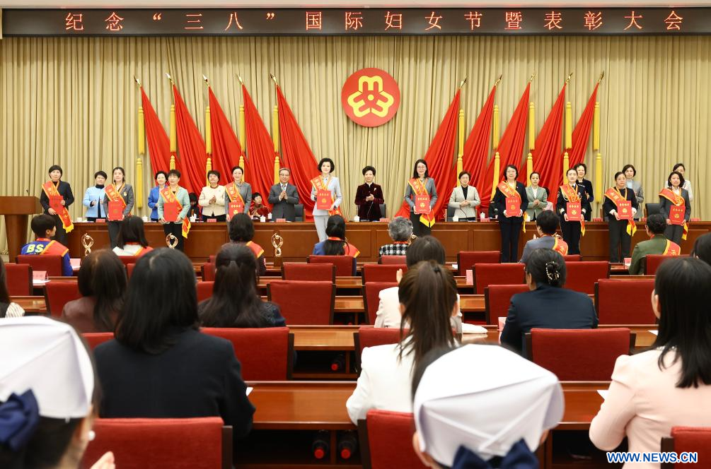 BEIJING, 3 mars (Xinhua) -- La Fédération nationale des femmes de Chine (FNFC) a organisé une réunion dimanche pour marquer la Journée internationale des femmes, qui tombera le 8 mars, et a honoré des Chinoises modèles.