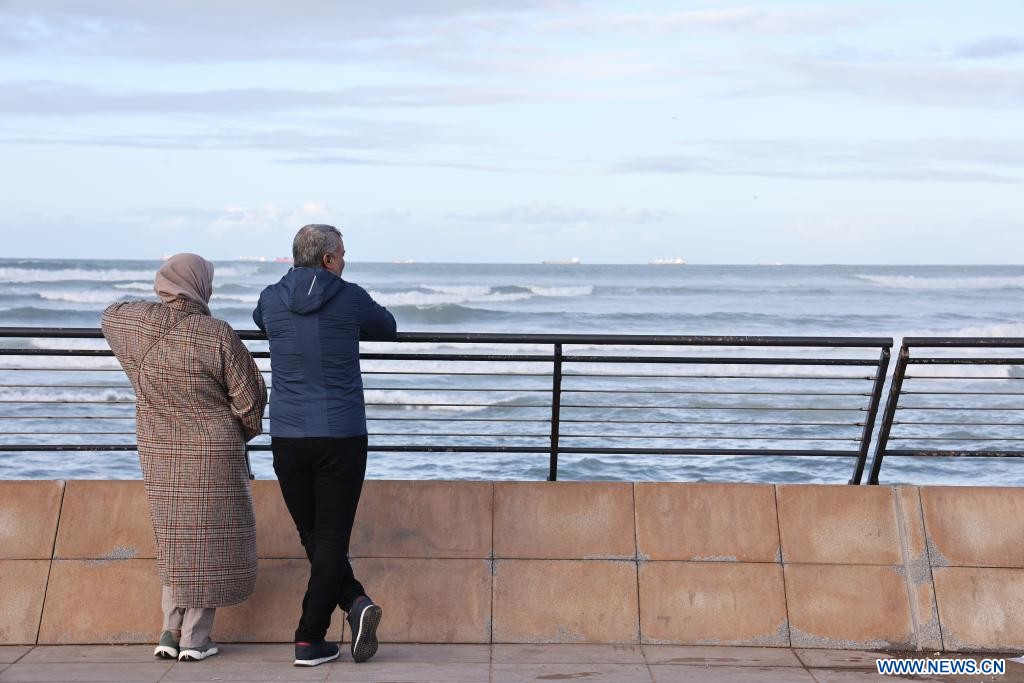 CASABLANCA, 4 mars (Xinhua) -- Des gens profitent de la vue sur l'océan Atlantique à Casablanca, au Maroc, le 3 mars 3024. Casablanca est la plus grande ville du Maroc et le centre économique et de transport du pays. (Xinhua/Huo Jing)