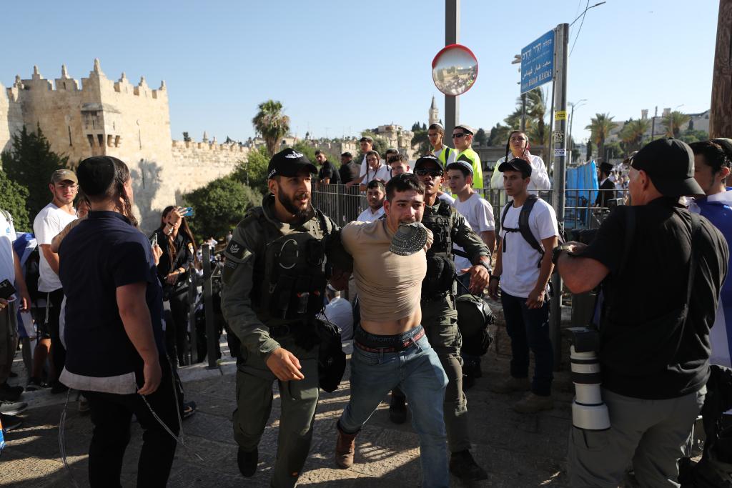 Un homme a été arrêté par la police frontalière israélienne lors d'une marche de drapeaux pour marquer la Journée de Jérusalem, le 5 juin 2024. Fin