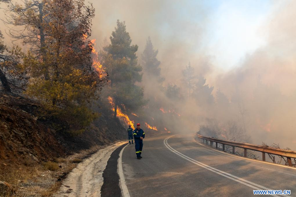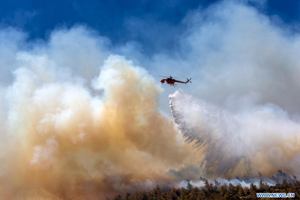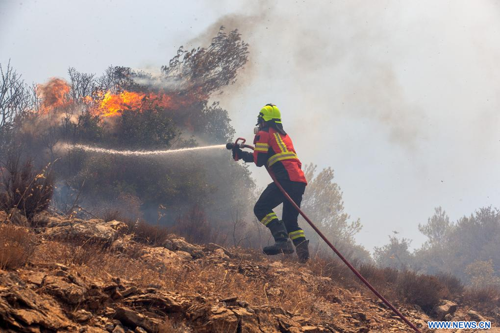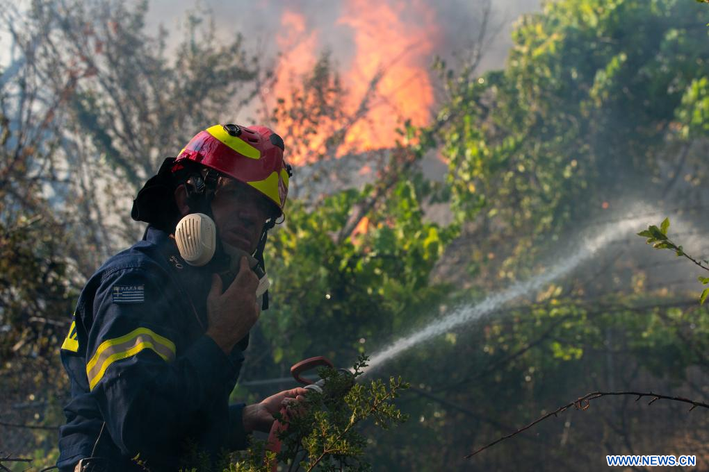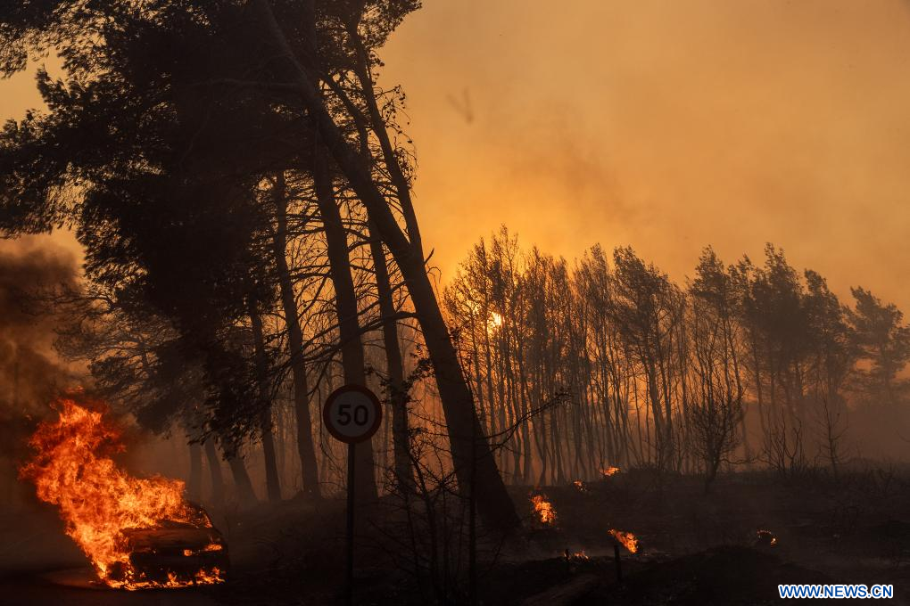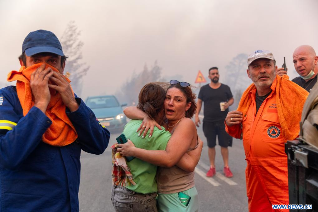 ATHENES, 12 août (Xinhua) -- Pour la deuxième nuit consécutive, des milliers d'habitants de la banlieue nord-est d'Athènes et de la région de l'Attique sont restés éveillés lundi, alors qu'un important incendie de forêt en progression rapide menaçait la capitale grecque.