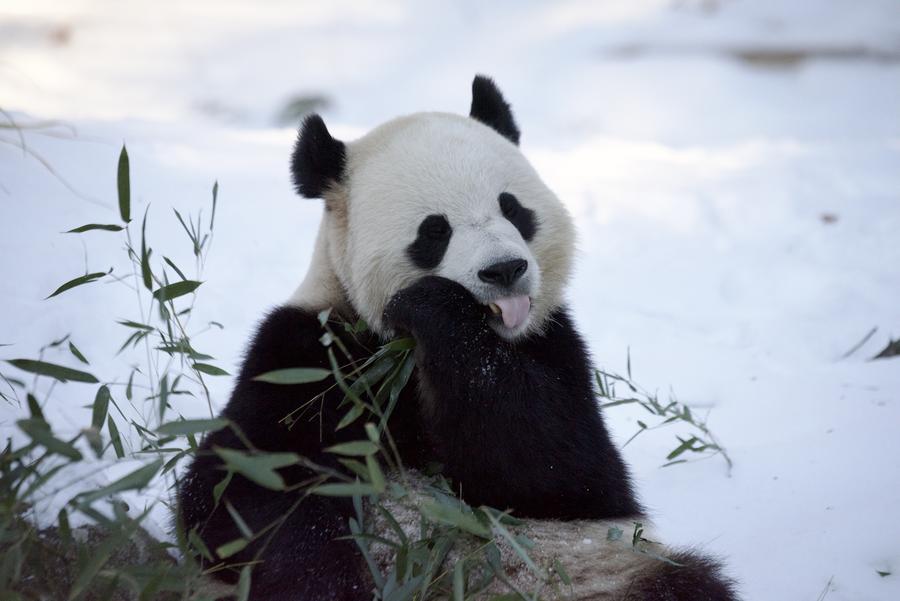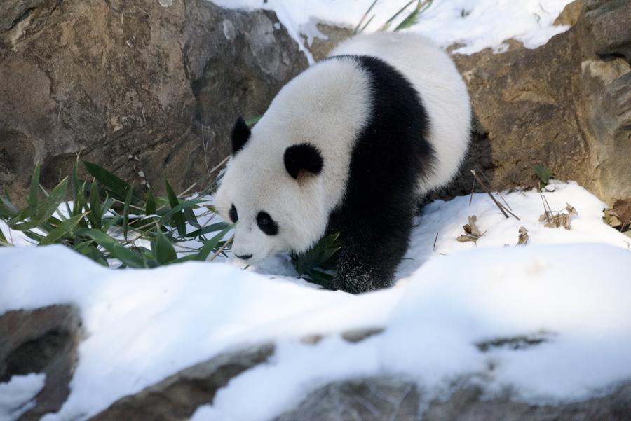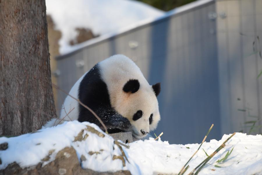 WASHINGTON, 10 janvier (Xinhua) -- Le panda géant femelle Qing Bao au Parc zoologique national de Washington, aux Etats-Unis, le 9 janvier 2025. Ce parc a organisé un événement en avant-première pour les médias chinois le 9 janvier, où les pandas géants Bao Li et Qing Bao ont fait leurs débuts devant la presse. (Xinhua/Deng Xianlai)Le panda géant mâle Bao Li mange du bambou au Parc zoologique national de Washington, aux Etats-Unis, le 9 janvier 2025. (Xinhua/Deng Xianlai)Le panda géant femelle Qing Bao au Parc zoologique national de Washington, aux Etats-Unis, le 9 janvier 2025. (Xinhua/Deng Xianlai)