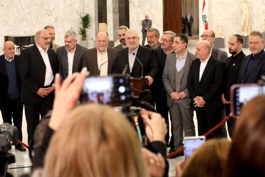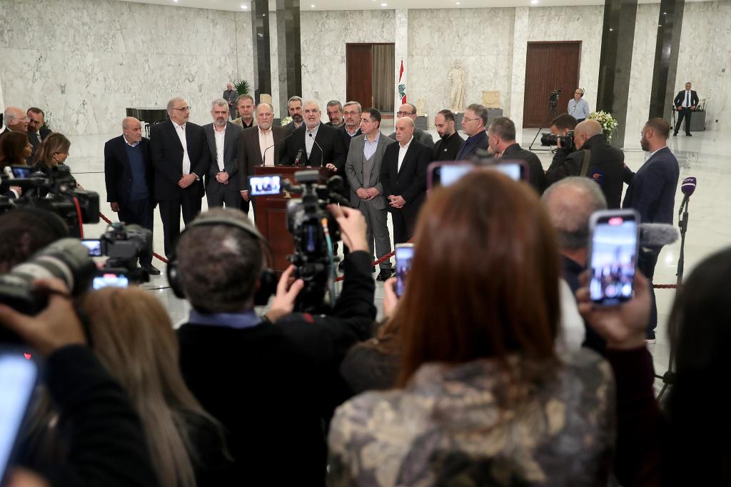 Un député libanais fait une déclaration à la presse après que Nawaf Salam a été nommé nouveau Premier ministre à Beyrouth, au Liban, le 13 janvier 2025. Nawaf Salam, président de la Cour internationale de justice de La Haye, a été nommé Premier ministre du Liban et chargé de former un nouveau gouvernement, a annoncé la présidence libanaise dans une déclaration. (Xinhua/Bilal Jawich)