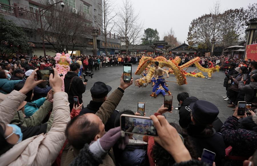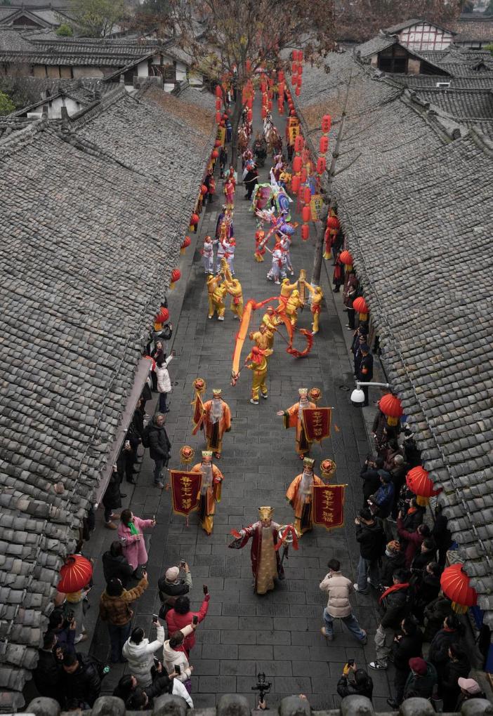 Un marionnettiste dans la ville de Langzhong, dans la province chinoise du Sichuan (sud-ouest), le 7 janvier 2025. (Photo : Jiang Hongjing)Des gens assistent à une danse du dragon dans la ville de Langzhong, dans la province chinoise du Sichuan (sud-ouest), le 7 janvier 2025.(Photo : Jiang Hongjing)