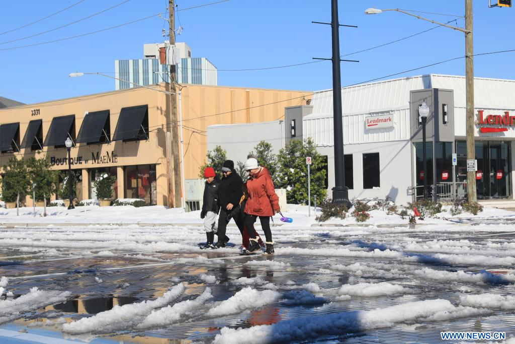 HOUSTON, 22 janvier (Xinhua) -- Une tempête hivernale d'une ampleur peu commune baptisée "Enzo" a balayé le sud des Etats-Unis, apportant avec elle des chutes de neige record et un temps extrêmement froid dans les régions habituellement tempérées de la côte du Golfe, et faisant au moins neuf morts mercredi matin.