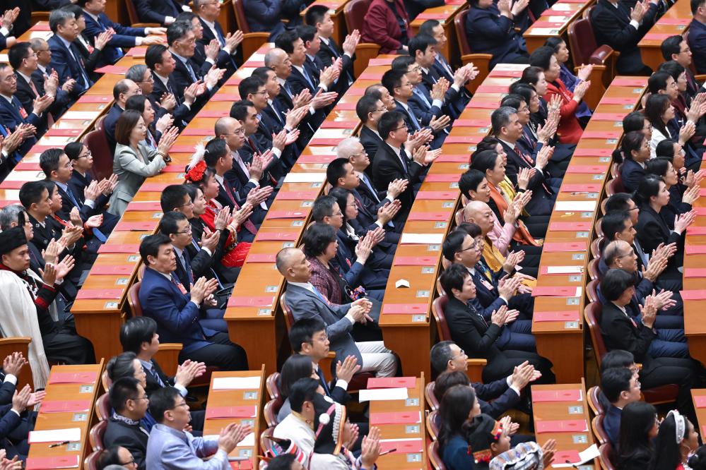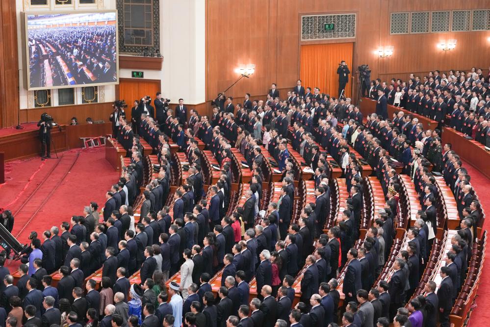 Le président chinois Xi Jinping et d'autres dirigeants ont assisté à la réunion au Grand Palais du Peuple à Beijing. Fin