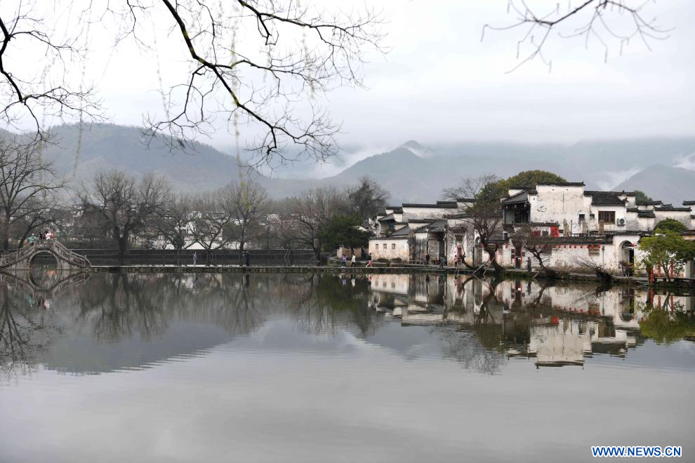 YIXIAN, 16 mars (Xinhua) -- Des touristes prennent du bon temps dans le village de Hongcun, dans le bourg de Hongcun du district de Yixian, dans la ville de Huangshan de la province chinoise de l'Anhui (est), le 14 mars 2025. (Photo : Zhang Chuanqi)