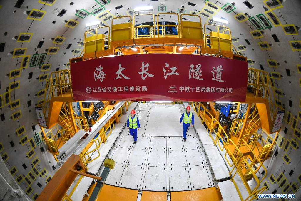 NANJING, 9 avril (Xinhua) -- La Chine a déployé mercredi un tunnelier géant de fabrication nationale pour la construction du plus long tunnel autoroutier sous-marin au monde réalisé à l'aide d'un tunnelier.