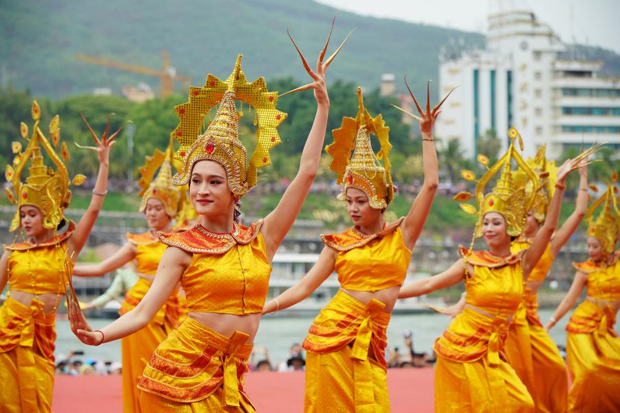 JINGHONG, 15 avril (Xinhua) -- Diverses activités culturelles folkloriques ont été organisées dans la préfecture autonome Dai de Xishuangbanna, dans la province chinoise du Yunnan (sud-ouest), pour célébrer le Nouvel An du calendrier de l'ethnie Dai, également appelé fête de l'aspersion d'eau.