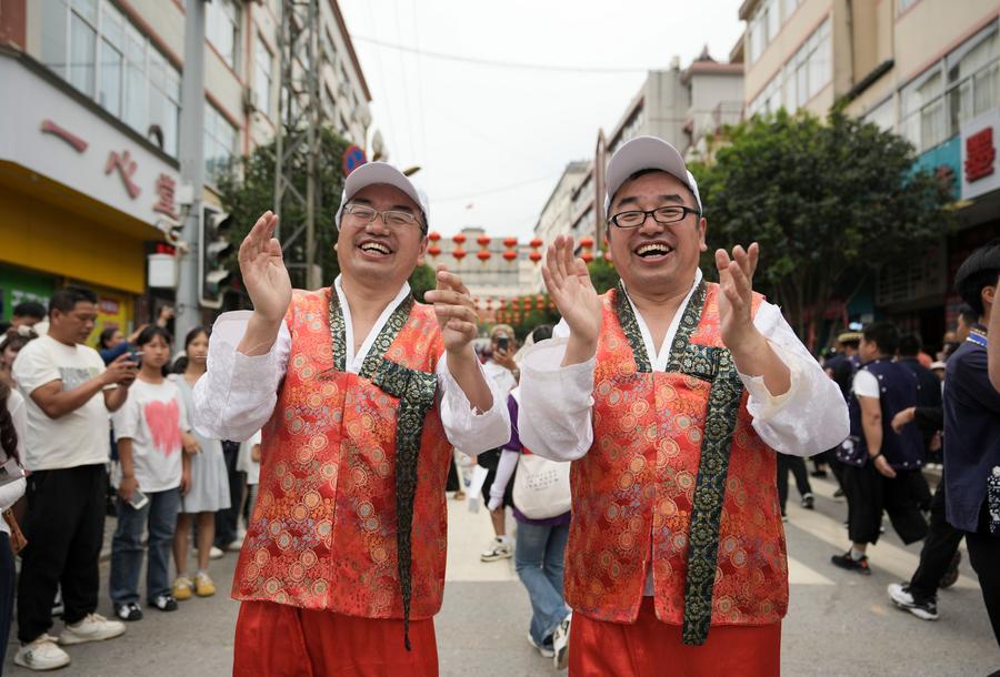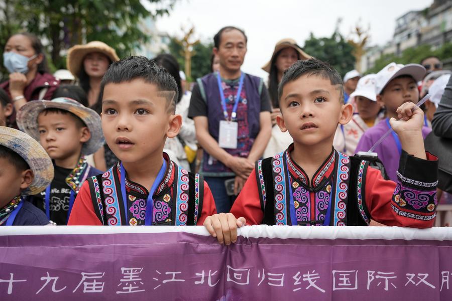 Photographie de jumeaux lors du 19e Festival international des jumeaux à Mojiang, dans le district autonome hani de Mojiang, dans la province du Yunnan (sud-ouest de la Chine), le 1er mai 2025.(Photo : Chen Xinbo)