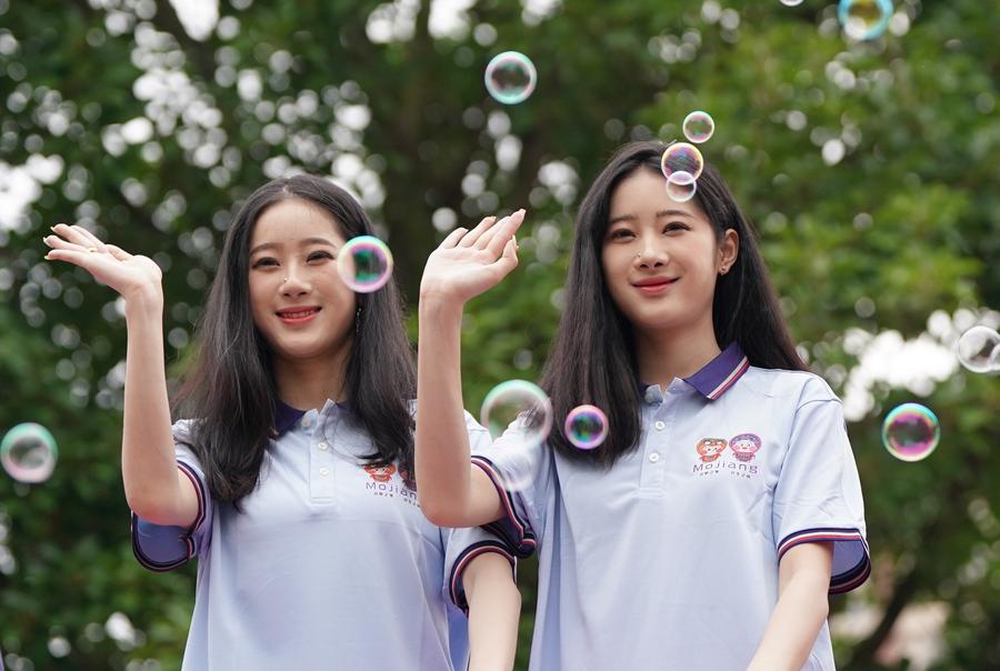 Photographie de deux jumelles lors du 19e Festival international des jumeaux à Mojiang, dans le district autonome hani de Mojiang, dans la province du Yunnan (sud-ouest de la Chine), le 1er mai 2025. (Photo : Chen Xinbo)