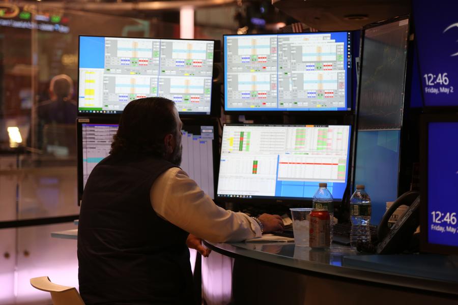 NEW YORK, 2 mai (Xinhua) -- Un trader sur le parquet de la Bourse de New York, aux Etats-Unis, le 2 mai 2025. Les actions américaines ont continué vendredi de grimper, alors que des chiffres de l'emploi meilleurs que prévu ont rassuré les investisseurs sur la résilience de l'économie. Le Dow Jones Industrial Average a gagné 564,47 points, soit 1,39%, pour clôturer à 41.317,43. Le S&P 500 a augmenté de 82,53 points, soit 1,47%, à 5.686,67. L'indice composite Nasdaq a augmenté de 266,99 points, soit 1,51%, pour terminer à 17.977,73. (Xinhua/Liu Yanan)Un trader sur le parquet de la Bourse de New York, aux Etats-Unis, le 2 mai 2025. Les actions américaines ont continué vendredi de grimper, alors que des chiffres de l'emploi meilleurs que prévu ont rassuré les investisseurs sur la résilience de l'économie. (Xinhua/Liu Yanan)Des traders sur le parquet de la Bourse de New York, aux Etats-Unis, le 2 mai 2025. Les actions américaines ont continué vendredi de grimper, alors que des chiffres de l'emploi meilleurs que prévu ont rassuré les investisseurs sur la résilience de l'économie. (Xinhua/Liu Yanan)