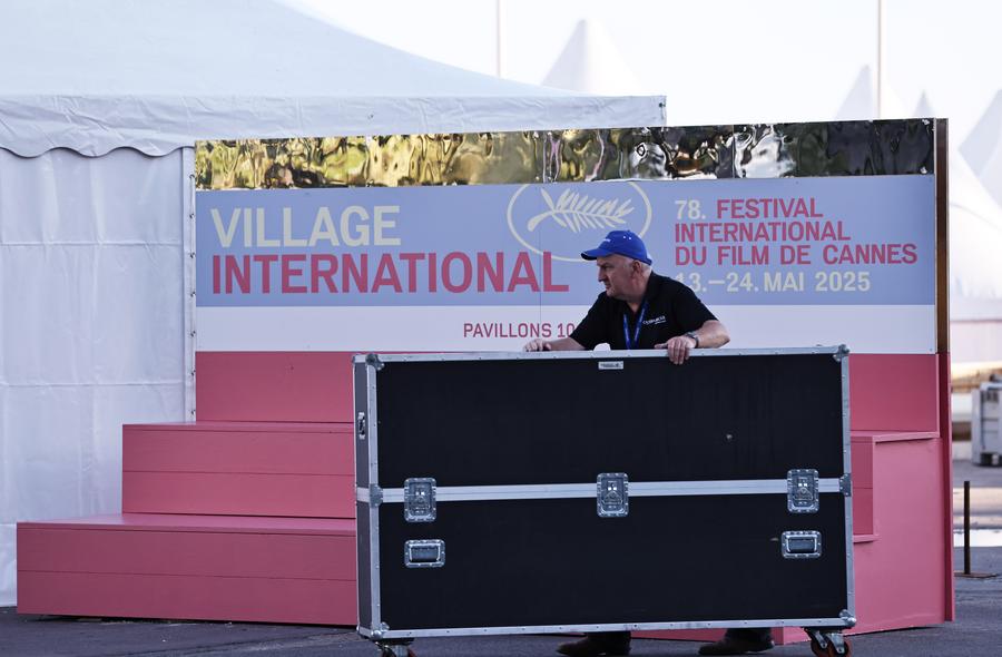 CANNES, 13 mai (Xinhua) -- Un membre du personnel se prépare pour le Festival international du film de Cannes, à Cannes, dans le sud de la France, le 12 mai 2025. La 78e édition du Festival de Cannes se déroule du 13 au 24 mai. (Xinhua/Gao Jing)