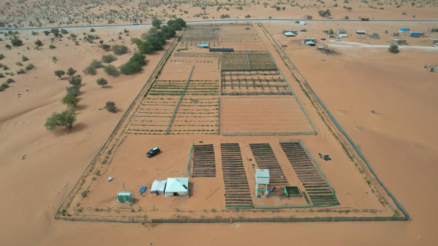 Grâce au soutien d'experts chinois et à l'application de technologies chinoises de lutte contre la désertification - notamment l'irrigation intelligente, les grilles en nylon pour fixer le sable, les pompes à eau alimentées par l'énergie photovoltaïque, la plantation sur sable et l'amélioration des sols, ce paysage autrefois désertique commence lentement à reverdir.