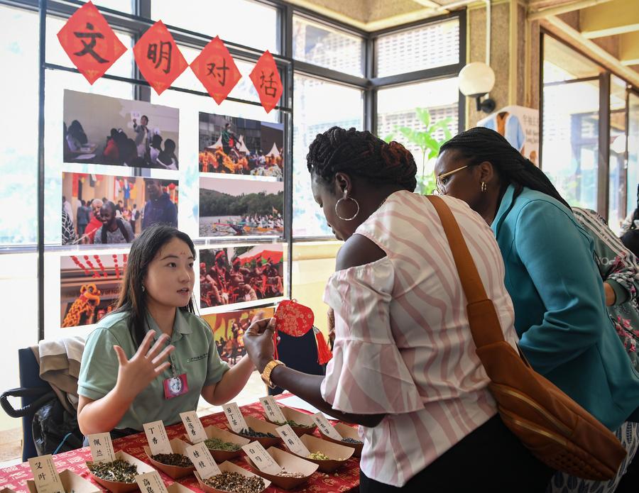 NAIROBI, 6 juin (Xinhua) -- Des danseurs kenyans se produisent lors d'un événement organisé à l'occasion de la Journée internationale pour le dialogue entre les civilisations à Nairobi, la capitale kenyane, le 5 juin 2025. Cette journée y a été célébrée jeudi, avec un appel à favoriser les ponts d'amitié et de compréhension entre les peuples de cultures différentes. (Xinhua/Li Yahui)Des participants découvrent des sachets médicinaux chinois lors d'un événement organisé à l'occasion de la Journée internationale pour le dialogue entre les civilisations à Nairobi, la capitale kenyane, le 5 juin 2025. (Xinhua/Li Yahui)Une artiste chinoise interprète un air d'opéra Kunqu lors d'un événement organisé à l'occasion de la Journée internationale pour le dialogue entre les civilisations à Nairobi, la capitale kenyane, le 5 juin 2025. (Xinhua/Li Yahui)■