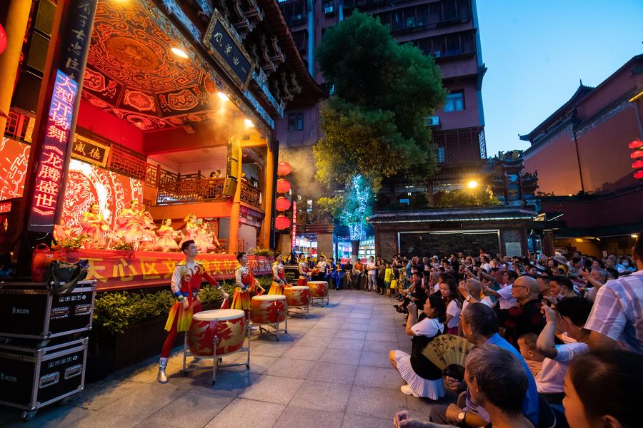 CHANGSHA, 12 juin (Xinhua) -- Sous les lanternes jaunes suspendues aux avant-toits du Palais du feu, bâtiment traditionnel aux murs rouges et aux tuiles vernissées de vert, les parfums mêlés du riz chinois et du café africain flottent dans l'air chaud de la nuit à Changsha.